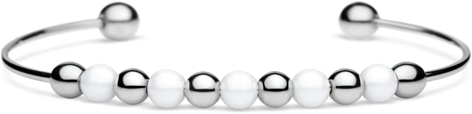 Bering Damen-Manschetten-Armband Arctic Glow Weiße Keramtikperlen Größe 62Silber 620-5117-057