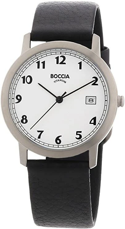 Entdecken Sie die Boccia Herrenarmbanduhr Titan mit Lederband 3617-01 – eine elegante und anspruchsvolle Wahl für den modernen Mann. Die Uhr besteht aus hochwertigem Titan und verfügt über ein schwarzes Echtlederband, das nicht nur bequem zu tragen ist, sondern auch stilvoll aussieht. Diese Analoguhr hat ein Mineralglas, das extrem langlebig ist und Kratzern widersteht. Mit einer Wasserdichtigkeit von 50000 Bar können Sie diese Uhr sogar beim Schwimmen tragen! Das Gehäuse hat einen Durchmesser von 34 Millimetern und ist in einem eleganten Silber gehalten, was der Uhr ein raffiniertes Aussehen verleiht. Diese Boccia-Uhr wird mit einer Dornschließe geliefert und läuft mit Hilfe eines Quarz-Uhrwerks äußerst präzise. Diese elegante Herrenarmbanduhr ist ein wunderbares Accessoire für jeden Anlass oder als Geschenk für jemand Besonderen.