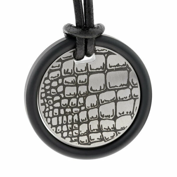Ernstes Design Damen Collier Lederkette Mit Rundem Anhänger 54cm Schwarz K678-S-54