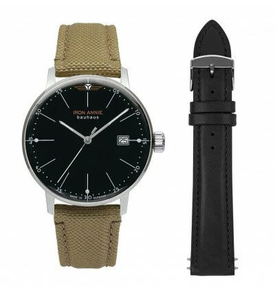 Iron Annie Herren Analoguhr Set Bauhaus Textilband Grün 5034-2