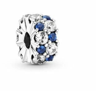 Verleihe mit dem Klares & blau funkelndes Clip-Charm jedem Outfit zusätzlichen Glanz. Dieses handveredelte, aus Sterling-Silber gefertigte dekorative Clip-Charm ist von den wichtigsten Designmerkmalen der Pandora Timeless Collection inspiriert. Der runde Clip ist am äußeren Rand mit klaren und leuchtend blauen Steinen in verschiedenen Größen versehen. Befestige den Clip an Deinem Pandora Moments Armband, um Deine Lieblingscharms zu trennen und Deinem Stil auf dezente Weise Farbe und Schimmer zu verleihen. Dieses Zwischenelement hat einen Silikon-Kern, der nicht auf Gewinde passt, kann aber an jeder anderen Stelle auf dem Armband getragen werden.