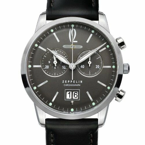 Diese Zeppelin Herrenuhr ist ein Meisterwerk der Handwerkskunst und vereint präzise Technologie mit elegantem Design. Das graue Ziffernblatt, das von Mineralglas geschützt wird, ist von einem silbernen Edelstahlgehäuse umgeben. Mit einer Wasserdichtigkeit von bis zu 50 Bar können Sie diese Uhr beim Schwimmen oder Schnorcheln tragen. Der Durchmesser des Gehäuses beträgt 40 Millimeter, während die Höhe 12 Millimeter misst. Diese Quarzuhr verfügt über eine Stoppuhrfunktion und Leuchtziffern, die auch bei schlechten Lichtverhältnissen gut lesbar sind. Das schwarze Lederband mit einer Breite von 21 Millimetern sorgt für einen bequemen Sitz am Handgelenk. Das Datum wird auf dem Ziffernblatt angezeigt und rundet das Gesamtpaket ab – eine perfekte Uhr für jeden Anlass!